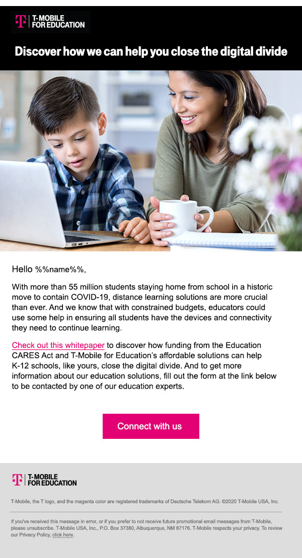 T-Mobile has pledged to bridge the digital divide by providing affordable internet access for K-12 schools.